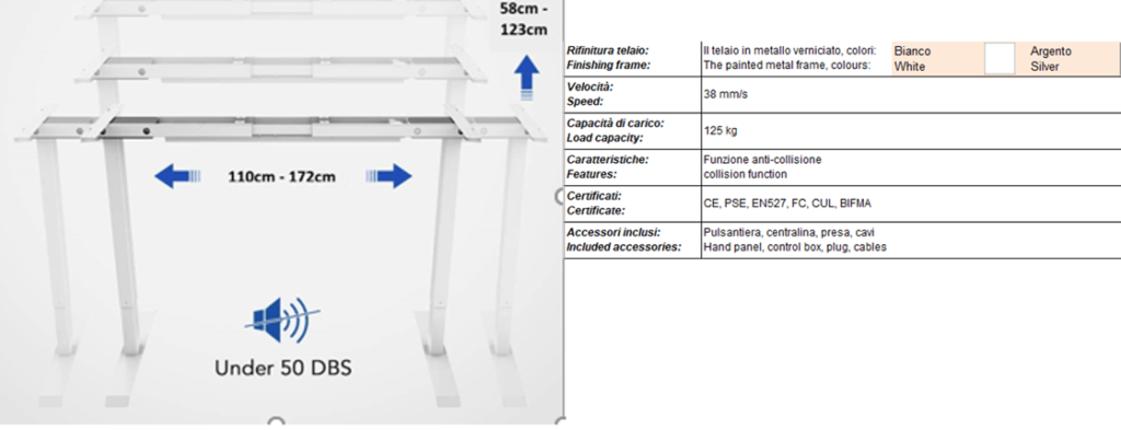 • Interruttore semplice sotto il piano del tavolo, con tasti su/giù